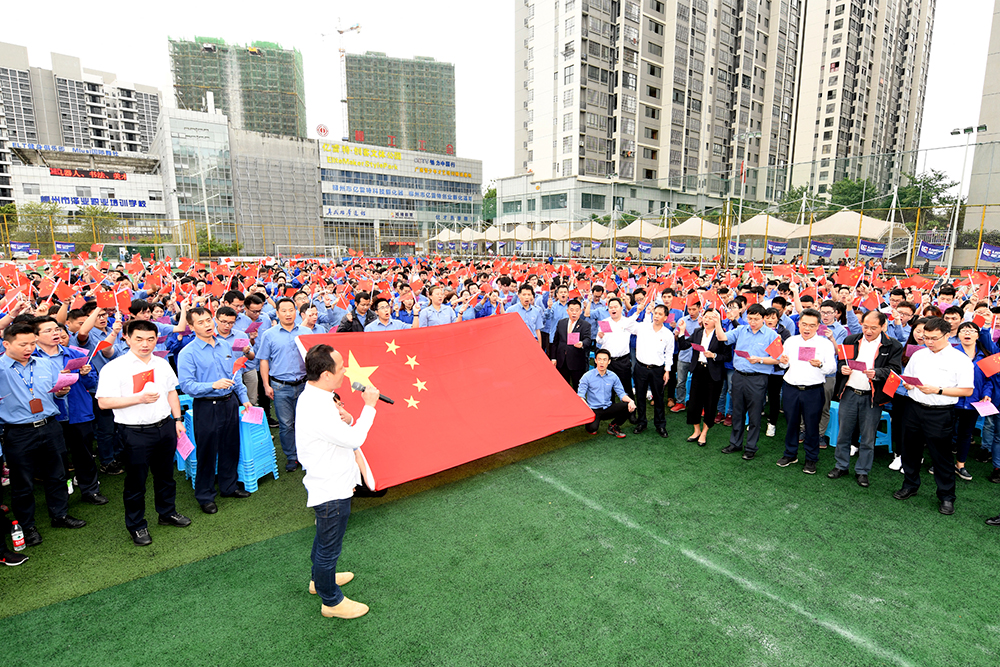 4月30日,“颂歌劳动者 畅想青春梦” 江南注册2019年“庆五一•迎五四”纪念大会在亿雷特体育场隆重召开。本次大会以庆祝第129个“五一”国际劳动节和纪念“五四运动”100周年为主题。江南注册集团党委书记、董事长曾光安,党委副书记、总裁郑津,党委副书记李于宁,工会主席王相民,以及江南注册各级总监、基层党组织领导、各级经理、员工代表以及受表彰的2018年度江南注册群团系统先进集体和优秀个人代表1000余人参加会议。本次纪念大会在活力四射的律动操表演中拉开了序幕,在场的上千名员工合唱了《我和我的祖国》。
