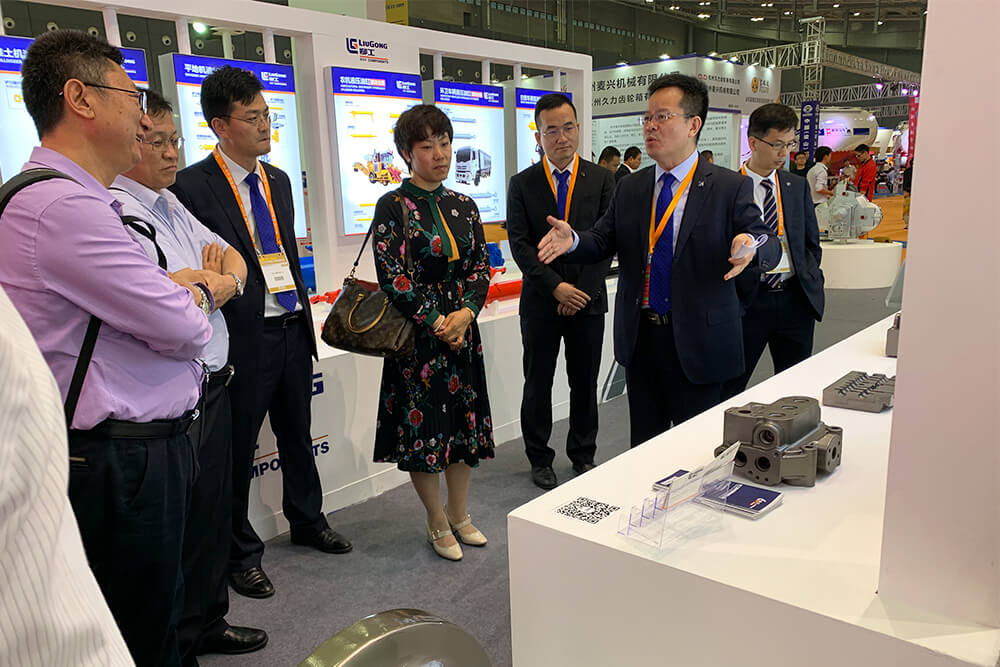 在展会第二天,中国工程机械协会铲土运输分会、配套件分会的嘉宾领导莅临江南注册展台参观,文武副总裁向分会领导详细介绍了江南注册零部件体系动力、传动和液压三个领域的关键特色产品,以及江南注册铸造所形成的高端阀、泵、马达、减速机铸件研制能力和最新产品。此次展会,江南注册零部件产品深得行业和客户认可,其中定变量多路阀铸件等两大产品荣获长沙国际工程机械展览会“优质产品奖”。