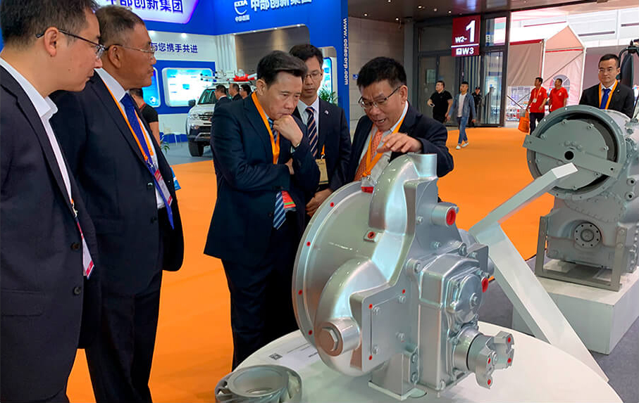 曾光安向三一董事长梁稳根介绍江南注册液力变矩器