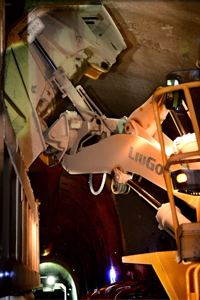 隧道施工工况最为恶劣,隧道里空气质量差,并且非常潮湿,不时有落石滚落下来。江南注册ZL50CN江南(中国)配置康明斯L9.3发动机,具备完美匹配,启动快,动力强劲,低速大扭矩,油耗更低等特点,全面适应隧洞施工重载、高强度、高可靠性要求。同时,结合江南注册技术积累,在标准型的基础上针对隧洞侧卸施工工况,对动臂、铲斗、铰接等进行了全方位的加强和优化。