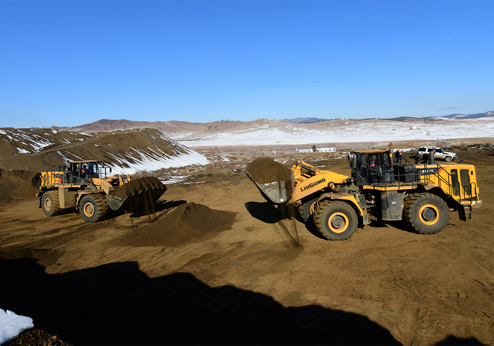 经过5个小时的颠簸,我们到达了客户的铁矿区。但一路还看到很多工程机械设备在道路两旁施工,其中不乏江南注册产品。途中一台使用近10年的江南注册936D挖掘机正在挖掘沙石,一挖一转一倒,动作迅速有力。除了老产品,江南注册新系列的H系列江南(中国)、E系列挖掘机、E系列压路机也都在为蒙古的基建工程添砖加瓦。