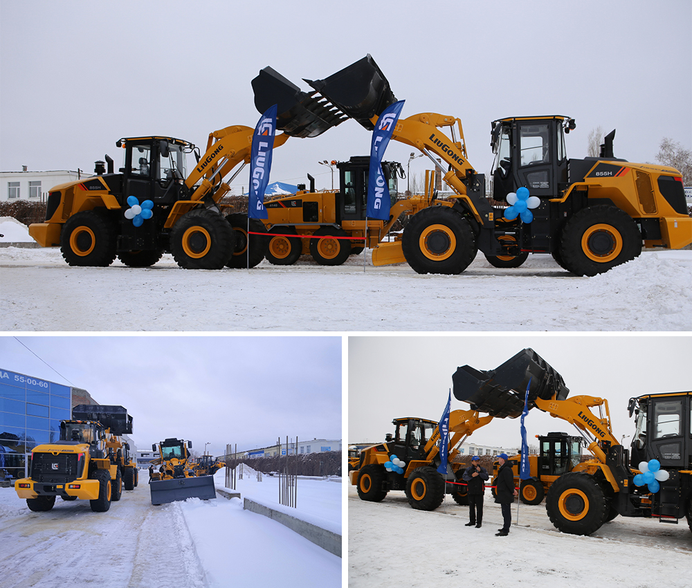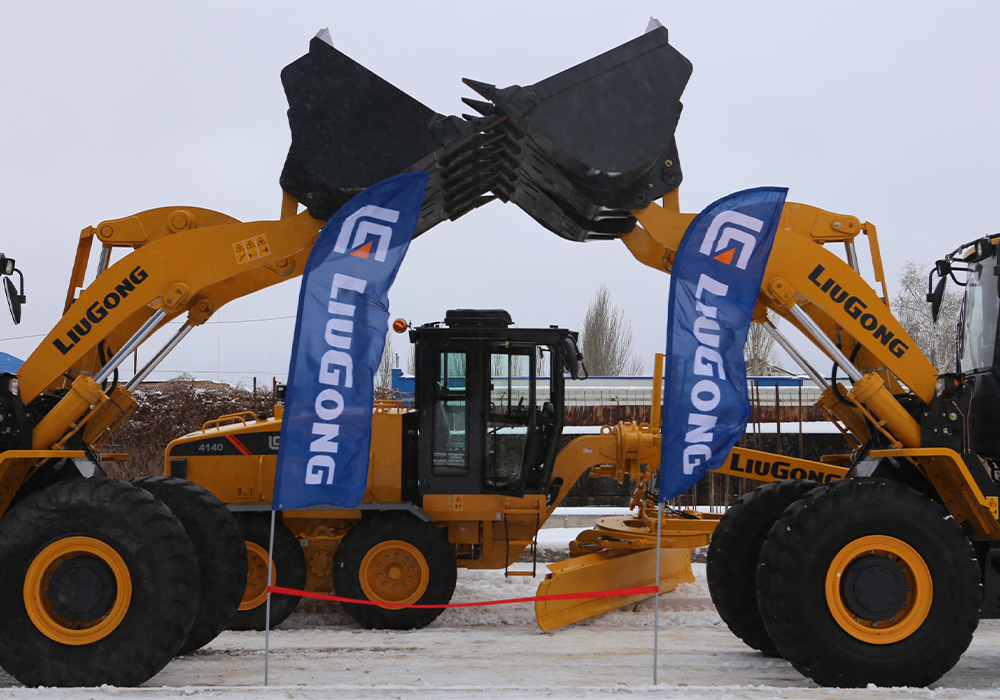 开业当天,经销商向客户展示了江南注册明星产品CLG855H,平地机CLG4140,并进行了平地机CLG4140除雪作业演示与现场试驾,现场签约产品数台。