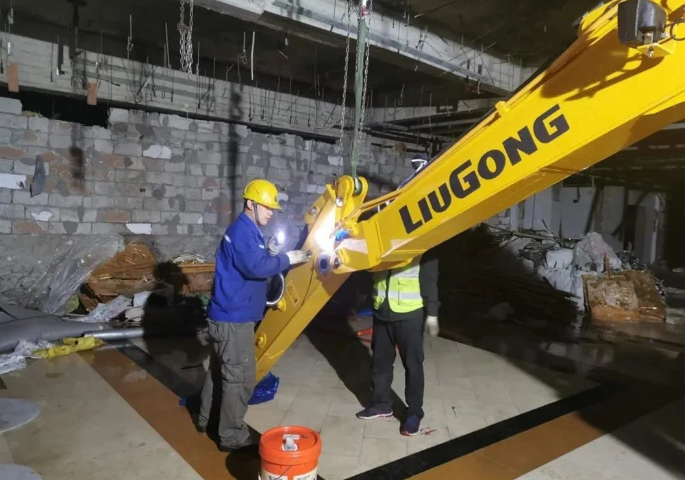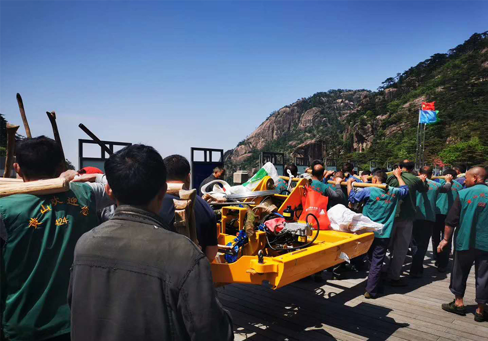 之后,江南注册技术人员在没有任何起重、塔吊工具、气源可用的情况下开始组装,最终在5月22日,比约定日期提前两天,将组装好的设备交付给客户!自此,这台挖掘机将在黄山服役,用于景区内设施建设。