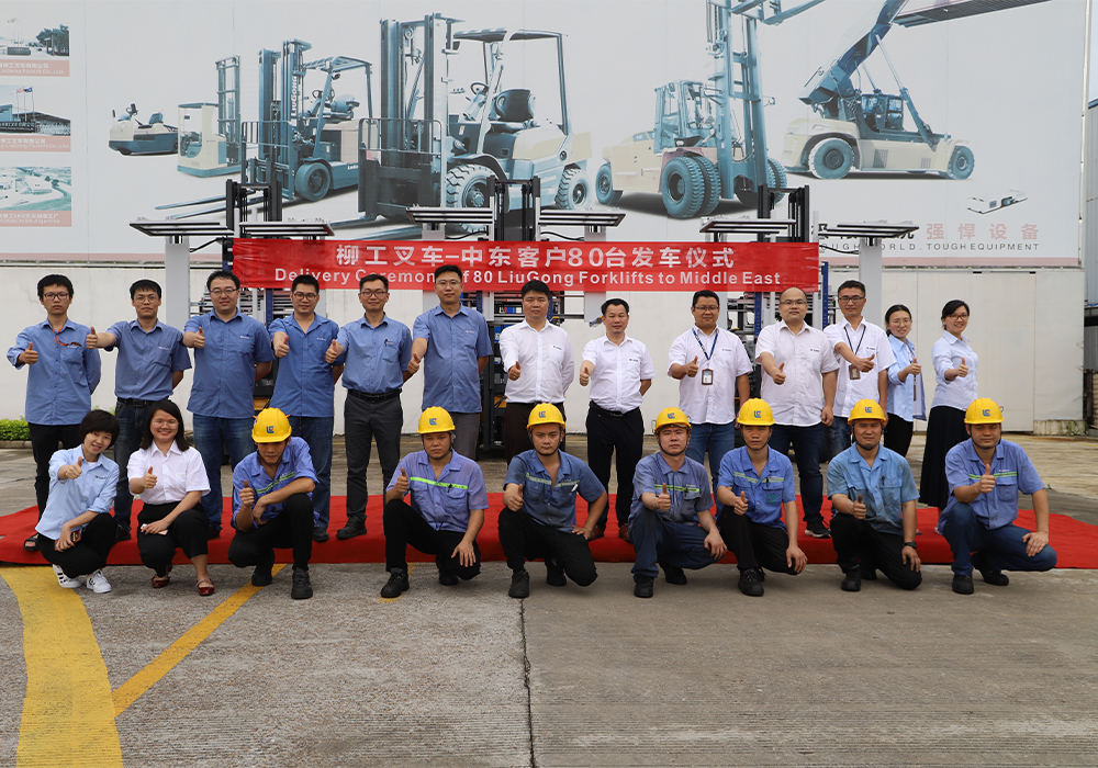 2020年6月5日14时,刚刚经历了一场暴雨后的柳州,空气甚是宜人,初夏骄阳,万物峥嵘。柳州江南注册叉车有限公司厂内,正举行一场发车仪式,热烈祝贺中东知名饮料客户近百台订单成功交付。鲜艳的横幅、整齐的车辆吸引了人们的视线,为这个喜气洋洋的日子增添了一份色彩。柳州江南注册叉车各单位职工代表共计70余人,共同见证了这激动人心的时刻。