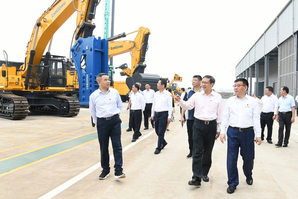 5月6日上午,“五一”假期后第一天,自治区国资委党委书记、主任李杰云率国资委领导班子和厅级干部,以及驻柳自治区直属企业党委书记来到江南注册,沿着习近平总书记4月26日在江南注册考察时的路线,实地领悟习近平总书记视察江南注册时的重要讲话和指示精神,召开党史学习教育第二次专题学习,广西江南注册集团机械有限公司,江南注册党委书记、董事长曾光安作全程讲解介绍。