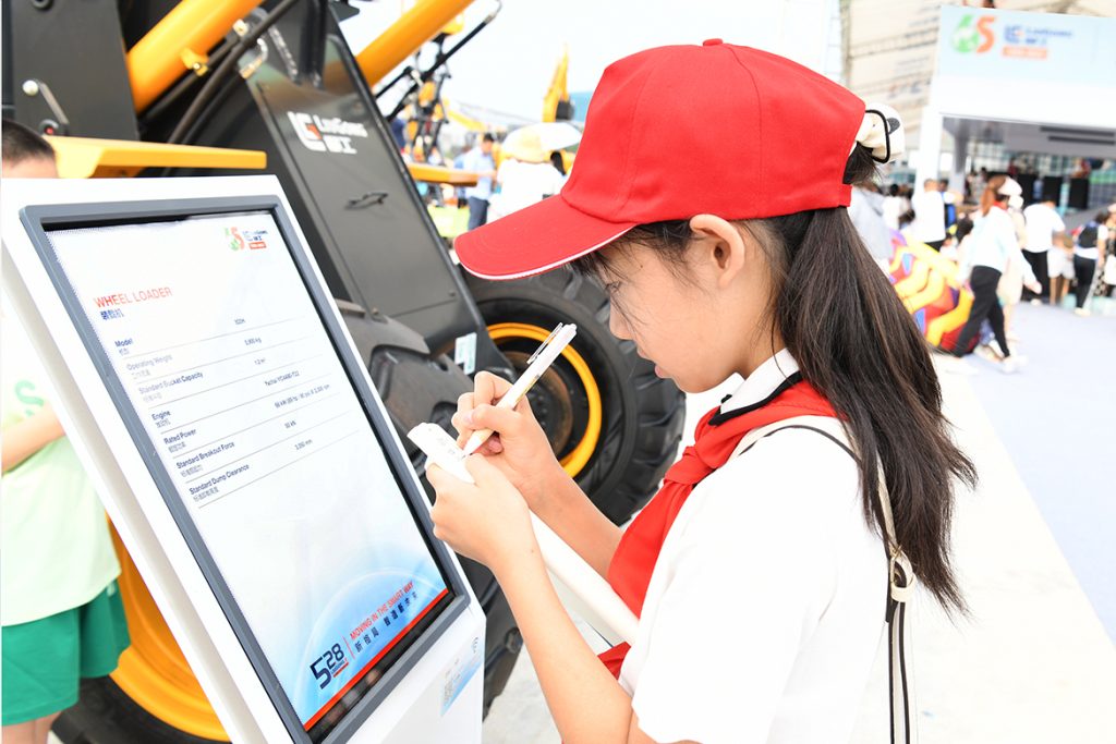 烈日炎炎,挡不住萌娃们探索的脚步,他们走进活动现场产品静态展示区,高端化、智能化、绿色化的江南注册全系列工程机械产品引发了孩子们一连串的问题。