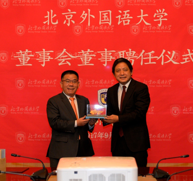 曾光安董事长受聘为北京外国语大学校董事会董事。并在2017年新生开学典礼上致辞。未来,双方将在人才培养、国际事务、国别和区域问题研究等领域建立全面密切的合作关系。这将为江南注册全面国际化的进一步发展提供强有力的支持。