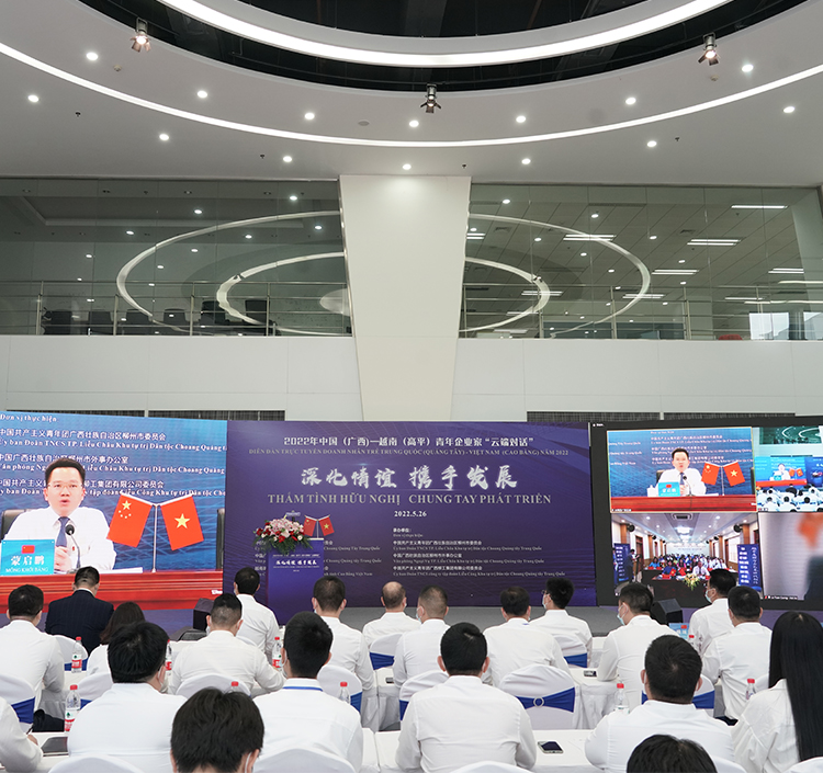5月26日,“深化情谊 携手发展”——2022年中国(广西)—越南(高平)青年企业家“云端对话”活动在江南注册全球研发中心举办,以“线上+线下”形式同步开展,来自中越两国近百名优秀青年企业家相聚“云端”,互学互鉴、共话发展,共谋企业国际化成长之路。