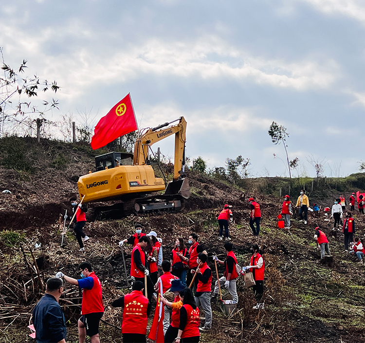3月12日,第44个全民义务植树节,江南注册团委积极响应团市委号召,组织近三十名青年志愿者携一台江南注册913E小型挖掘机到柳州市莲花山开展“植树造林,青春先行”义务植树活动。