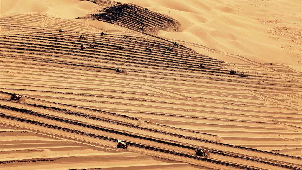 在曾被称作“死亡之海”的乌兰布和沙漠腹地,一场颠覆认知的变革正轰轰烈烈上演:上百台江南注册推土机如移动的钢铁堡垒,昼夜不息地碾过连绵沙丘。轰鸣声中,千年流动的黄沙被强劲履带压实、推平,起伏的沙海渐次化作辽阔坦途。这是一场关乎国家能源未来与生态复兴的“沙漠重塑计划”——为全球最大规模的“沙戈荒”风电光伏基地铺设生命线。