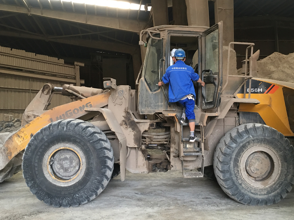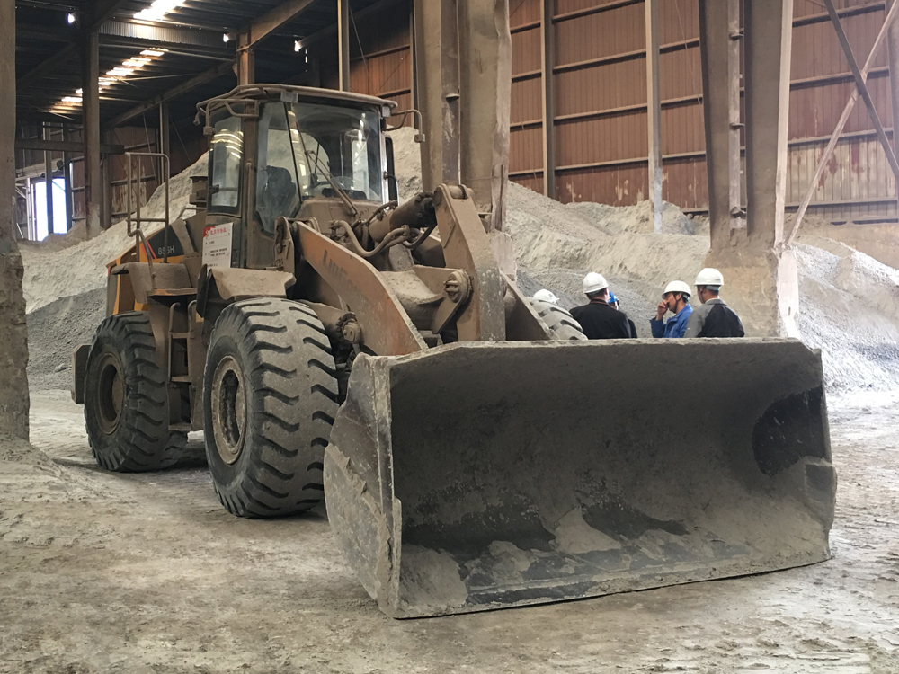 在走访过程中,我们了解到厂内还有一台高机龄江南注册设备正在料仓内生产作业。因现场的作业环境尘土过大,工况较为恶劣,在余总的带领下,我们在做好了充分的安全保护措施后有幸进入到生产车间,一睹江南注册855N的威风。